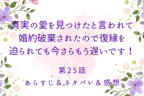 【ネタバレ】「真実の愛を見つけたと言われて婚約破棄されたので、復縁を迫られても今さらもう遅いです!」25話の感想・考察
